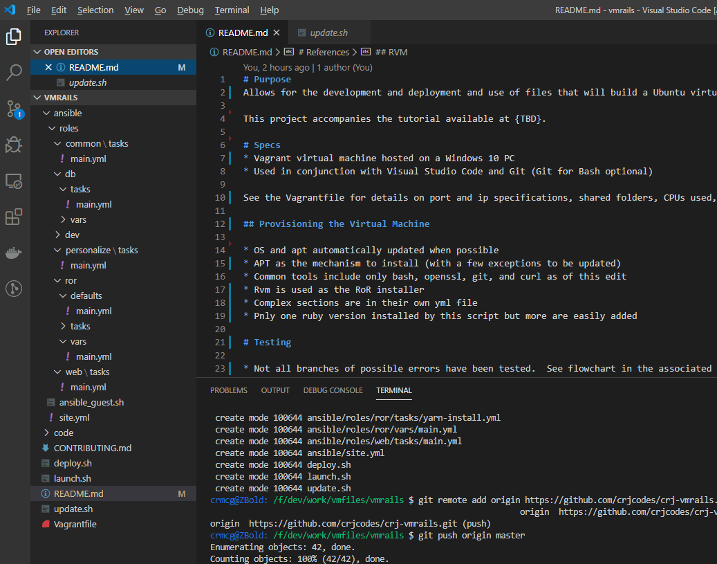 [ARCHIVED] Vagrant, Ansible, Ubuntu, and Ruby on Rails VM I’ve assembled a tutorial and Github project covering how to create and run a Windows 10 Ruby on Rails VM using Vagrant and Ansible. While you can find the project via crjcodes on GitHub, the tutorial is posted in a series here on my blog. Related Leave a Reply Cancel replyCommentEnter your name or username to comment Enter your email address to comment Enter your website URL (optional) Δ